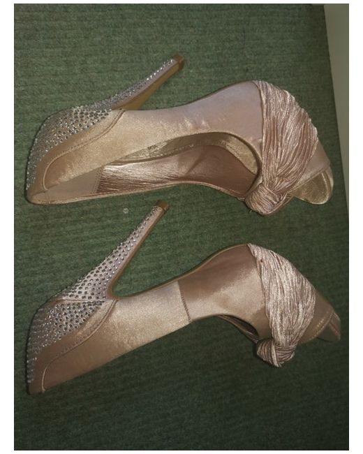 Atmosphere Bride Wedding diamond bow open peep toe platform high heels shoes size 5. New without tags, only 1 shoe worn in shop to try on, marks on this shoe on bottom should come out with a quick wash. Small staining around the top lip(where your foot is in the shoe) of this shoe. Should come out with wash or stain remover.