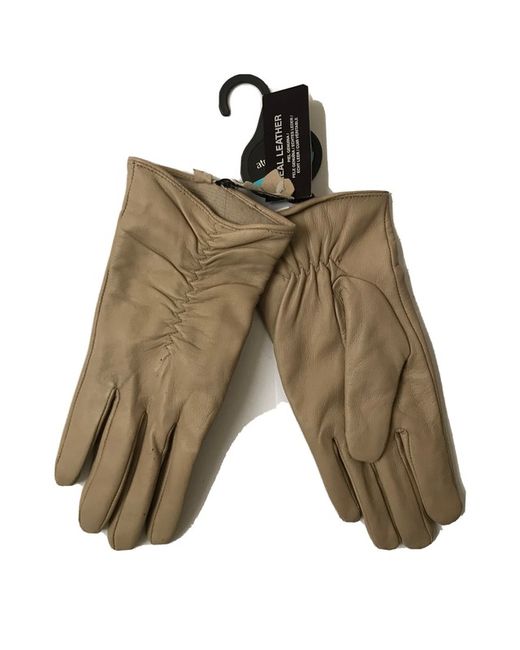 Women's Beige Stylish Chic Leather Winter Lined Gloves Small/Medium Bnwt New