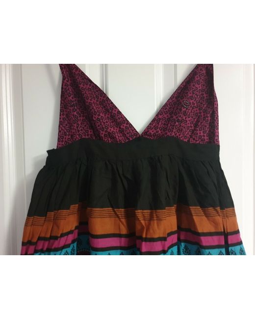 Colourful Black Magenta Stripe Pattern Strappy Floaty Summer Dress 8