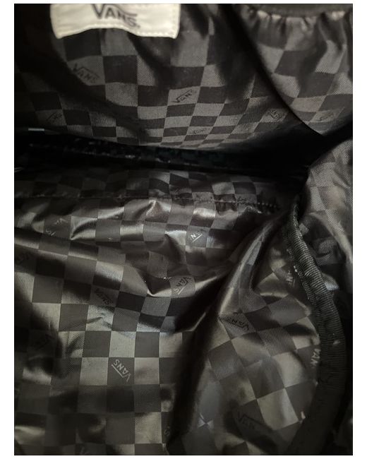 The whole thing is completed with the Vans logo on the front. Oversized zip pocket on inside with drop in pocket. Trim 100% Polyester. Listed as New with defects as there is a small mark on the front of bag on the left - see last photo.