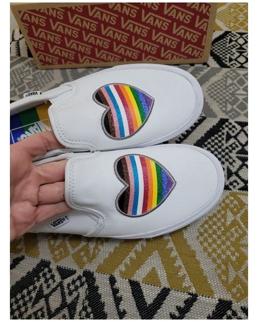 Made with sturdy canvas featuring a glitter rainbow heart, this classic slip-on shoe also includes elastic side accents, padded collars and Vans signature rubber waffle outsoles. The Pride Classic Slip-On incorporates a kaleidoscope of color with bold prints and a Vans twist on an iconic rainbow print.