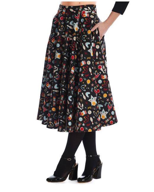 The skirt is cut to be below the knee in length. It is equipped with a zip closure, which makes it easy to put on and take off while ensuring a secure fit. The skirt is available in a range of sizes from XS to 2XL (UK 8 to UK 18).