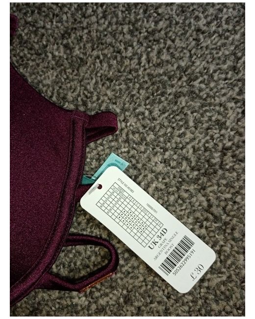 This deep burgundy underwired bikini top from Boux Avenue is a stylish and supportive addition to any woman's summer wardrobe. In size 34D, it provides a flattering fit for those with a larger bust, while the underwired design adds a touch of elegance to the classic bikini style. Perfect for lounging by the pool or taking a dip in the ocean, this top is sure to make you look and feel your best at any beach or by the seaside.