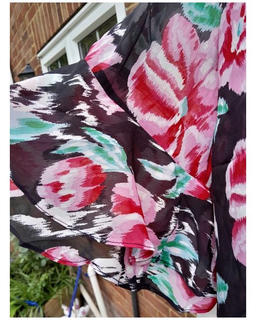 Key Features Include: - Round neckline - Keyhole cutout at the back Key - Elbow-length flare sleeves with double-layer ruffle - Semi-sheer fabrication - Black camisole lining included - Curved hemline at hips I ALWAYS COMBINE POSTAGE THANK YOU FOR LOOKING