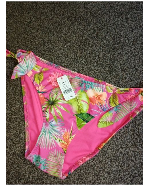 This listing features two brand new with tags size 8 bikini bottoms from Boux Avenue. The bottoms are designed for women and come in a vibrant multicoloured pattern, perfect for adding a fun and stylish touch to your beach or poolside look. Made by the popular brand Boux Avenue, you can trust in the quality and comfort of these bikini bottoms for your summer wardrobe.
