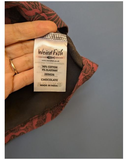 Great Weird Fish A-Line jersey skirt, unwanted gift. Item colour is described as 'chocolate' - dark red pattern background with brown pattern.