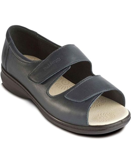 Crafted with precision, these Padders Shell sandals epitomise comfort merged with timeless style. Designed specifically for women, their flat design is complemented by an adjustable strap feature, ensuring a snug and personalised fit. The black leather upper material offers durability while exuding classic elegance. Proudly made in England, these sandals reflect a commitment to quality craftsmanship. The open-toe design allows for breathability during warmer months, making them an ideal choice for those who value both comfort and sophistication in their footwear repertoire. Available in UK size 4.5, they promise to be a delightful addition to any wardrobe.