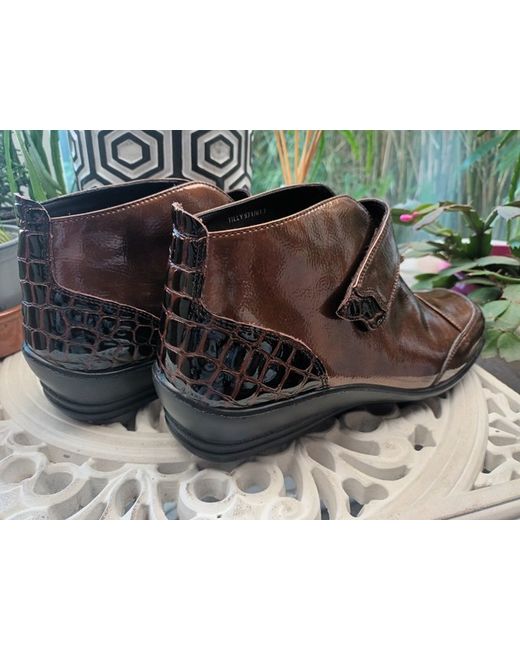 Padders Bronze Patent Ankle Boots. Crocodile Effect Trim. Dual Fitting System For Standard Or Wide Fit. Fully Adjustable Touch And Close Straps. Size Uk 7 (40). Spongy Insoles For Comfort. New Without Box Or Tags.