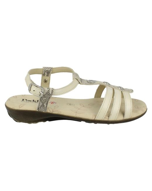 Ladies Open Toe T-Bar Buckled Wide Fit Leather Sandals Pearl