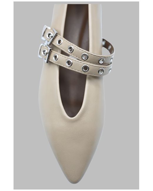 Unleash your fashion-forward side with our Caryn Double Buckle Pointed Flat Shoes. The low heel adds a touch of height, while the double buckle and eyelet straps exude edgy coolness. The sleek pointed toe adds a touch of sophistication. From a casual outing to a dressed-up occasion, these shoes offer both comfort and style.