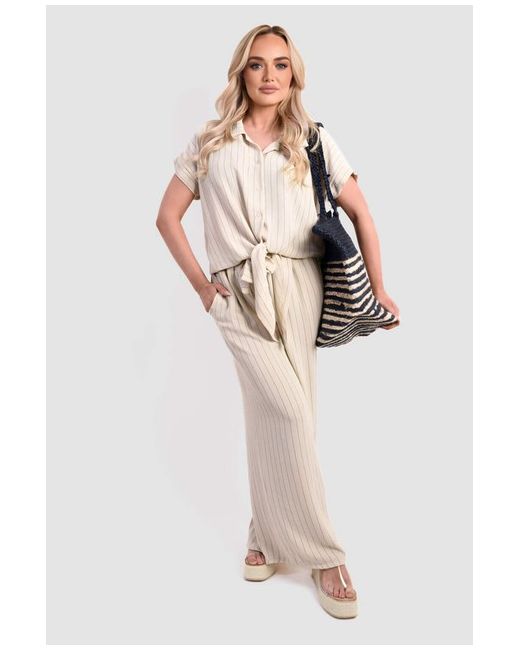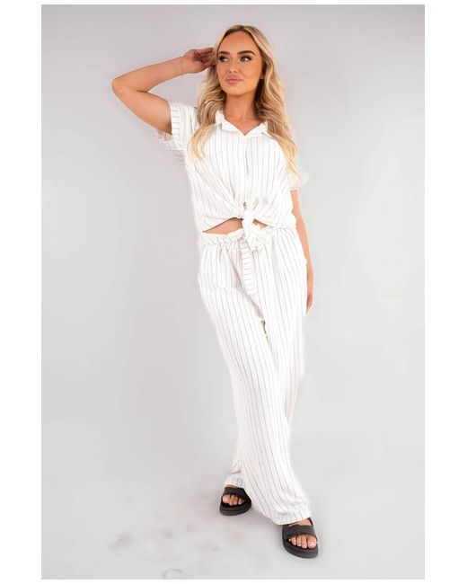 Striped Button Down Tie Front Top and Trouser Co-ord Set The Ruth Striped Button Down Tie Front Top and Trouser Co-ord Set is a stylish and fun outfit! The top has cute stripes and a tie front, adding a bit of flair.