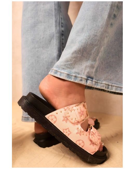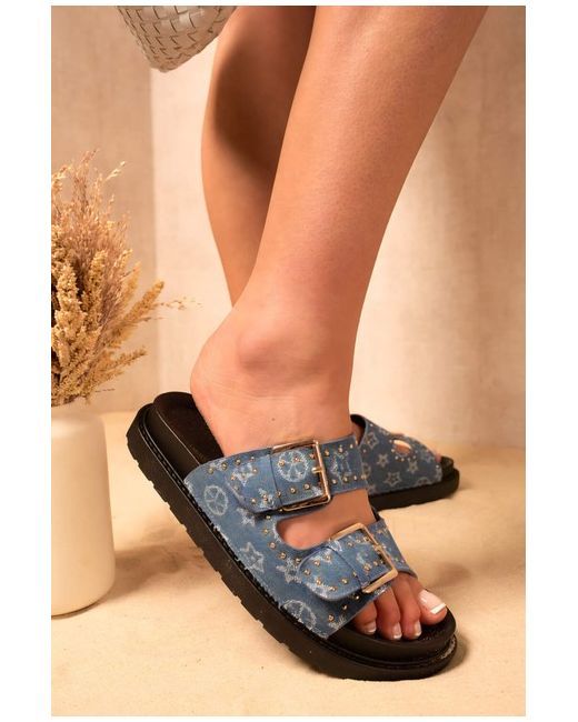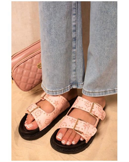 Double Buckle Studded Slip On Sandals The Alena Double Buckle Studded Slip-On Sandals are a stylish addition to your shoe collection! They feature two adjustable buckles and cool studs that make them stand out.