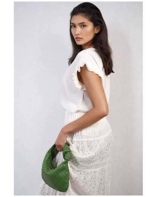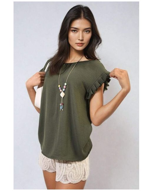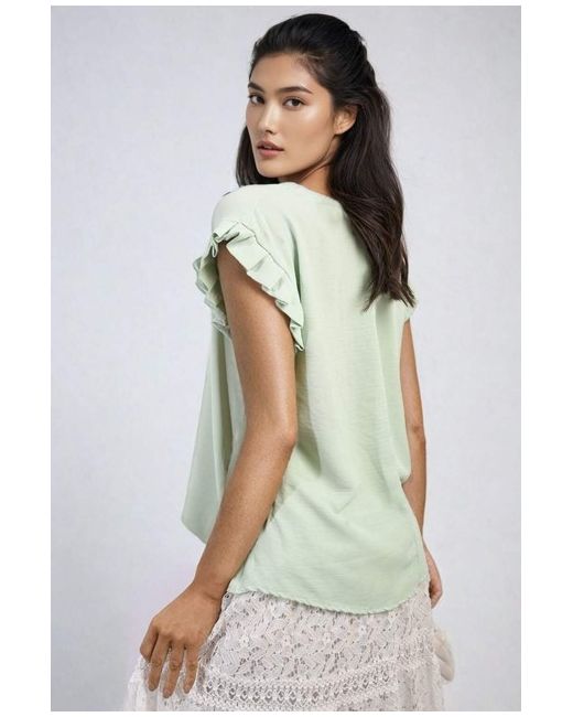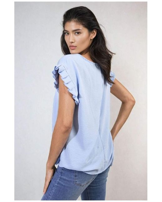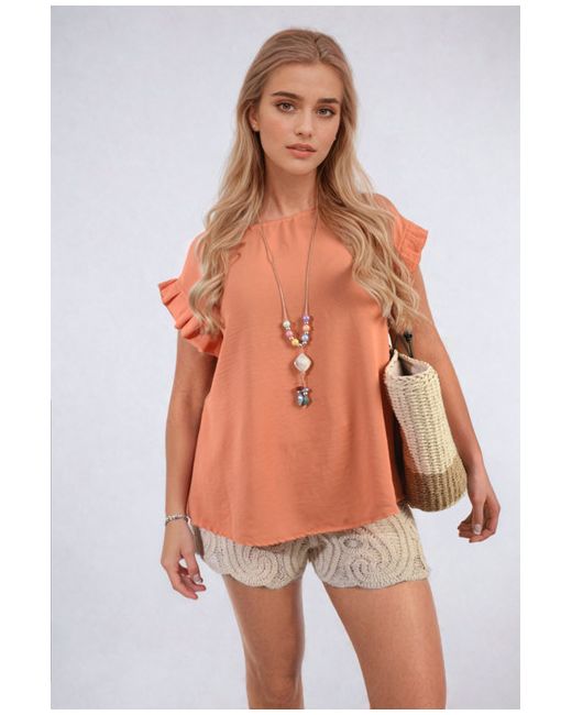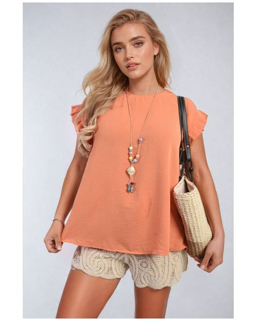 Ruffle Trim Sleeve Top The Vera Ruffle Trim Sleeve Top is the perfect addition to your wardrobe! It’s super cute and has fun ruffle sleeves that add a little flair to your outfit. This top is comfy and easy to wear, making it great for both casual outings and dressier occasions.
