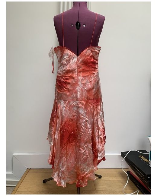 Women's Red Ladies 100Silk Patterned Floaty Dress Eur46 Designer y2K Vintage BNWT