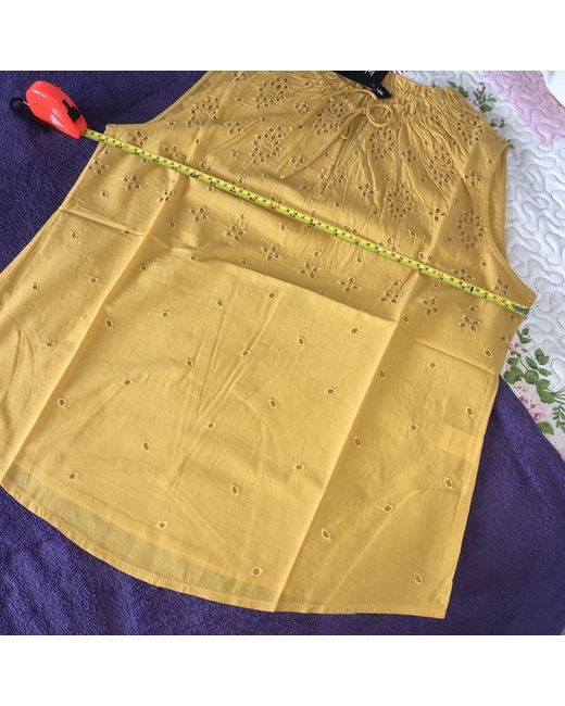 This mustard cotton tops is a little brighter than the photos. Perfect for the warmer weather it is cotton and designed to be a loose fit. Still in original packaging.
