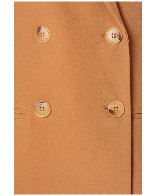 Crafted from a premium woven fabric, it features a double-breasted design with striking gold-tone buttons that add a touch of opulence. The longline silhouette creates a sleek, elongated look, while the notched lapel collar and buttoned cuffs lend a polished finish.