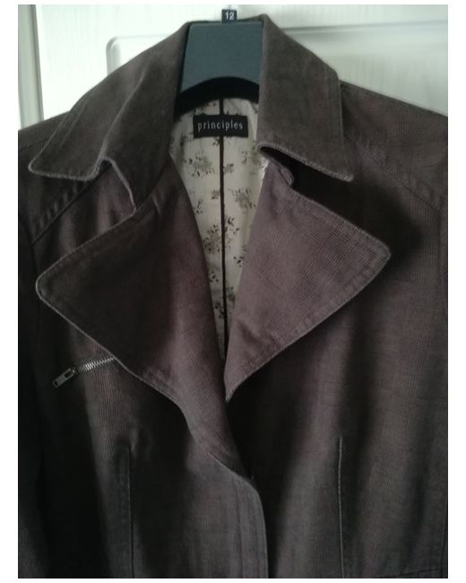 Small zipped front pockets. Very versatile jacket may be worn for many occasions. Mock buckled belt. Never worn. Immaculate condition.