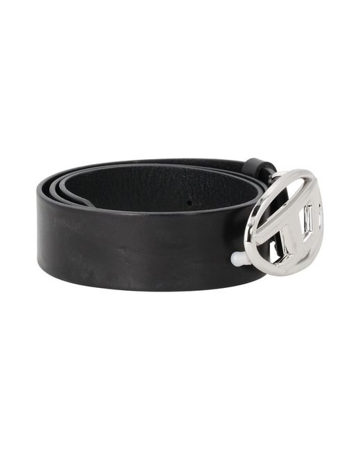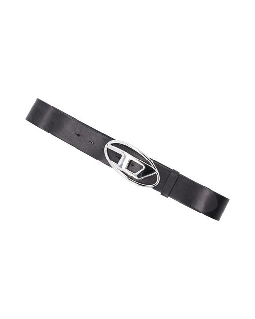 DIESEL Womens Basic Belt Black Leather Silver Logo W4cm Size 75