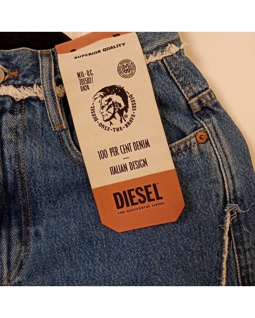 These Diesel jeans for women in size 25 feature a slim fit and a wide-leg style with a high rise. They are designed in a classic blue colour and come with a unique slit detail. The jeans are brand new with tags attached, making them a stylish and trendy addition to any wardrobe. Perfect for those who prefer a modern and edgy look, these Diesel jeans offer both fashion and comfort in one chic package.
