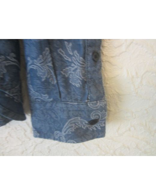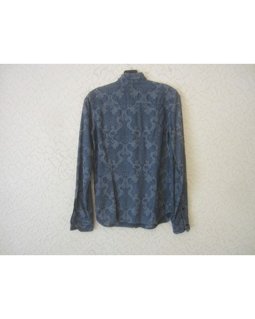 Diesel Black Gold shirt made of 100% Cotton in blue and silver tones. Back length is 24.5"(62.2 cm). Buttoned cuffs and gauntlets. Concealed front button placket.