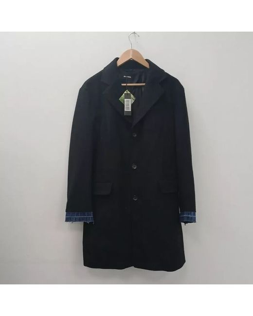 This Diesel overcoat is made of soft wool blend in black, featuring a single-breasted button closure and a collared style. It is a size UK 16 with a long coat length, suitable for autumn, winter, and spring seasons.
