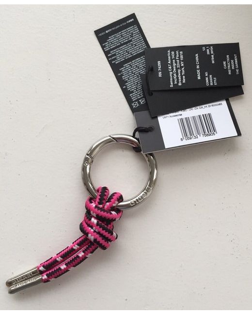 Diesel Pink Rope Key Ring Bnwt. Genuine designer key ring Has a stainless steel shiny silver chunky circular ring with a push down section to put your keys on it or can be attached to a bag Has a pink, white and black rope looped around it with metal ends with Diesel embossed on them Circular ring is 2” diameter Rope is 4.5” long You can take the rope off and use the ring if you prefer Great gift idea From a smoke and pet free home
