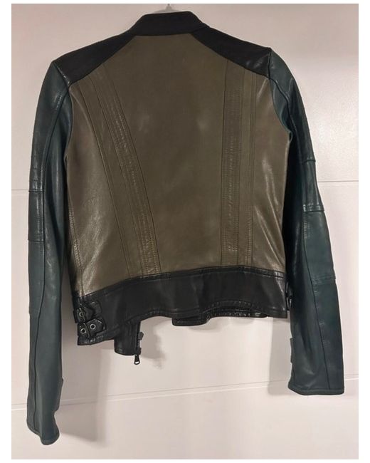 Stunning Diesel Black gold luxury colour block unique leather jacket. In green & black.