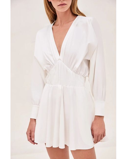 The River Dress is an effortlessly chic mini, designed a plunging neckline and a gathered waist detail that creates a flattering silhouette. With its flared hem and long sleeves, this versatile piece transitions seamlessly from day to night.