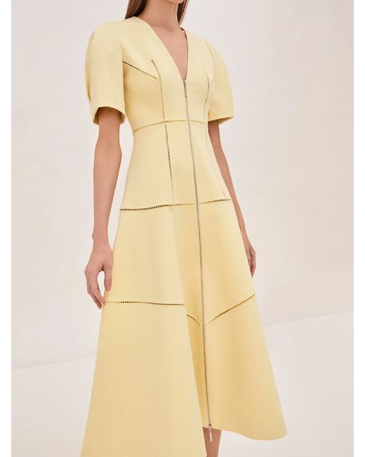 Introducing the Valry Dress, where modern minimalism meets effortless sophistication. This dress is all about clean lines and understated elegance, featuring subtle stitched detailing that adds depth and texture to its sleek silhouette. The structured fit and flared skirt create a flattering shape, while the zipper front gives it a contemporary edge.