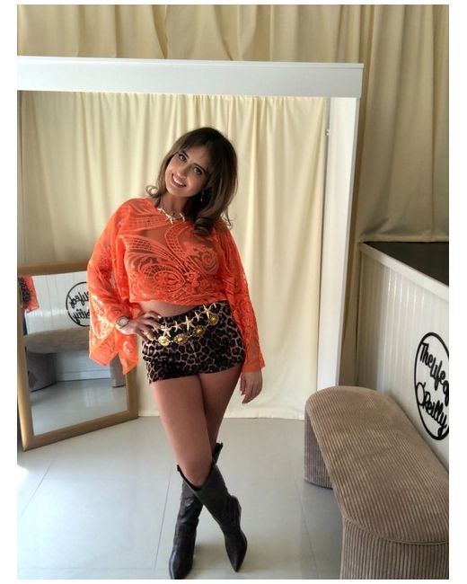 Women's Orange Sequin Wing Sleeve Top