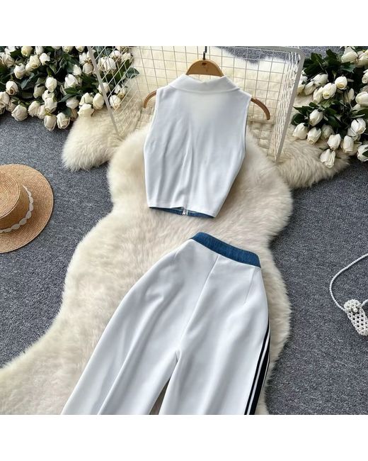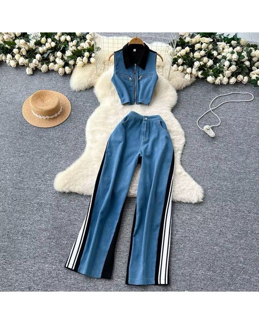 Chic Denim Sets Strap Sleeveless Stripe CamisBasics Wide Legs Pants Set
