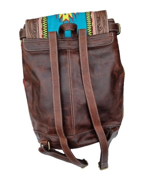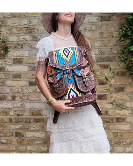 Aztec Large TOOLED LEATHER BAG Backpack boho Western vintage Carpet kilim Hippie