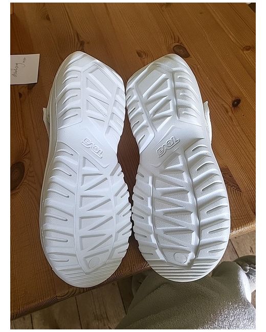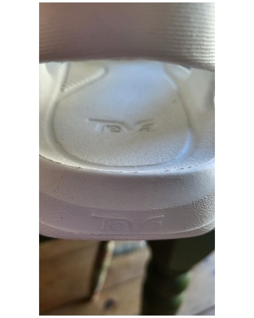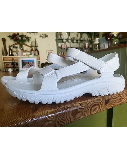 Please note that these are the plastic /waterproof style. The product is a pair of Teva sandals in white, designed for women in UK shoe size 7. These flat sandals feature synthetic upper material, making them durable and practical for everyday wear.