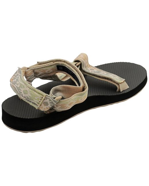 These Teva Original Universal Sunscape sandals in Peach Ice are the perfect blend of comfort and style for women. Crafted with a durable textile upper and breathable textile linings, they offer all-day wearability. The synthetic insole provides cushioning, while the rubber sole ensures excellent traction on various surfaces. A secure strap fastening allows for a customized fit, making these sandals ideal for walks, hikes, or simply running errands.