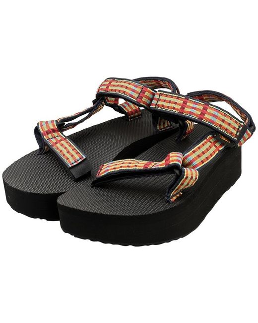 Teva's Flatform Universal sandals in Black Multicolour are the perfect blend of style and comfort. Crafted with a durable textile upper, these sandals offer breathability and flexibility for all-day wear. The cushioned synthetic insole provides lasting comfort while you walk. A sturdy rubber sole ensures reliable traction on various surfaces. Adjustable straps allow for a customized fit, ensuring a secure and comfortable feel. Whether you're exploring the city or enjoying a day at the beach, these versatile sandals are ready for anything.
