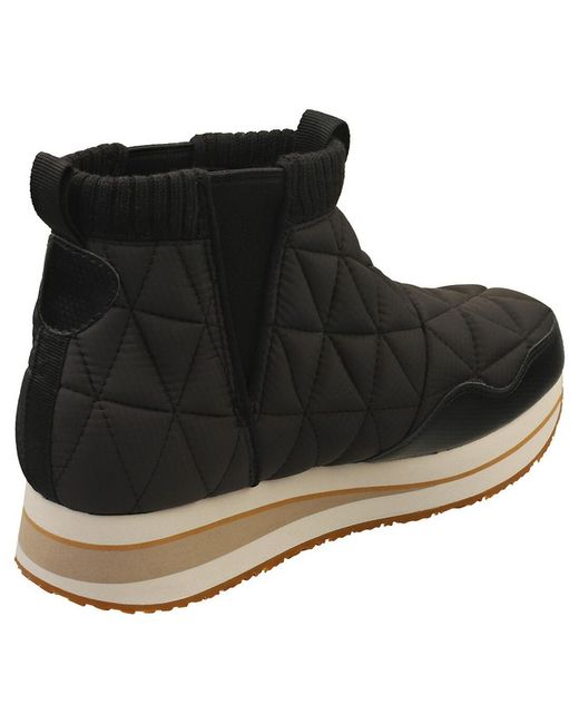 Step into effortless style with the Teva REMEBER MID PLATFORM boots. These black casual boots offer a modern twist on classic footwear with their trendy platform sole and comfortable textile lining. Crafted from a durable combination of textile and synthetic materials, these slip-on boots are perfect for everyday wear, adding a touch of edgy chic to any outfit. The breathable textile insole and grippy rubber outsole ensure all-day comfort and support, while the versatile black colour complements everything in your wardrobe.