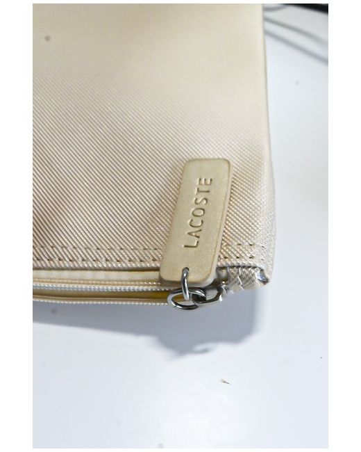 This Lacoste Woman's Tote Bag in Medium size features a Zip closure with a shimmering gold champagne exterior. The bag has a white cotton lining with gold champagne faux leather handles. It is embossed with the Lacoste logo and has a sleek design from the ECLIPSE 12.12. Concept. The RRP is £90.