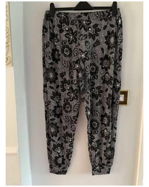 BNWT size 18 black & white tropical floral joggers /trousers Elasticated waist & tie 95% viscose 5% elastane Thankyou for looking