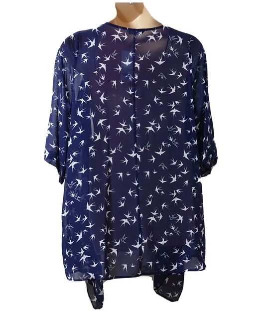 Women's Dark Blue Long Lightweight Waterfall Jacket 22 White Swift Birds on Navy Bnwt