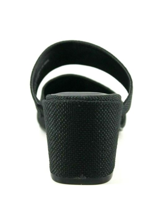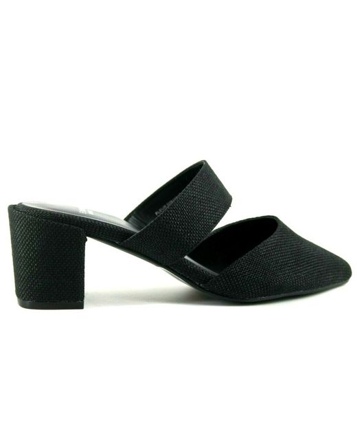 Black Pointed Toe Block Heel Sandals / Shoes. Textile Upper. 55mm Cone Heel. Almond Toe. Slip On Closure. Man Made Sole.