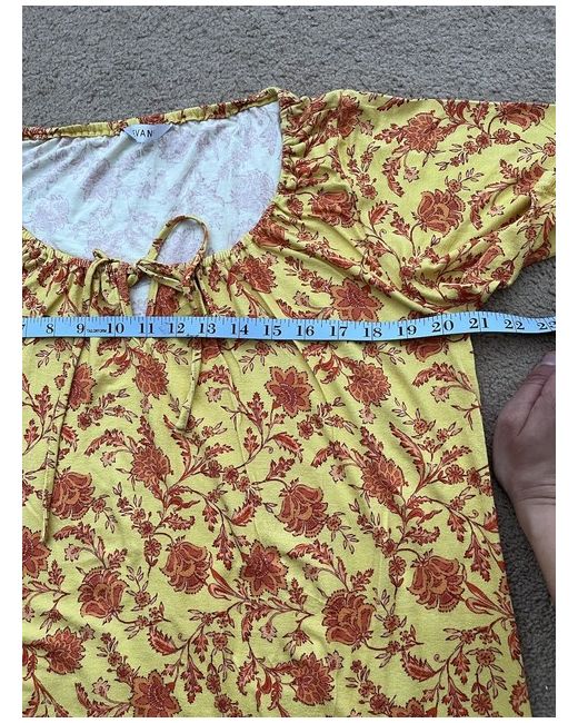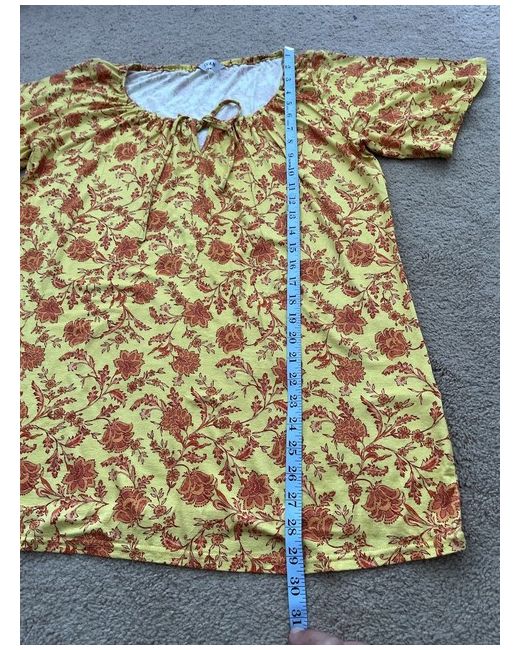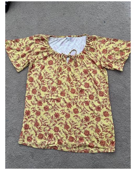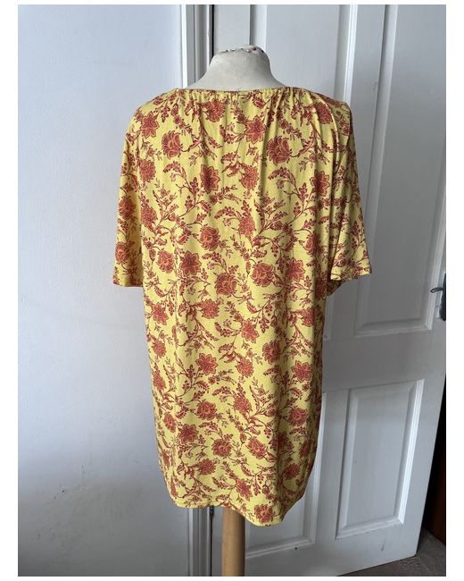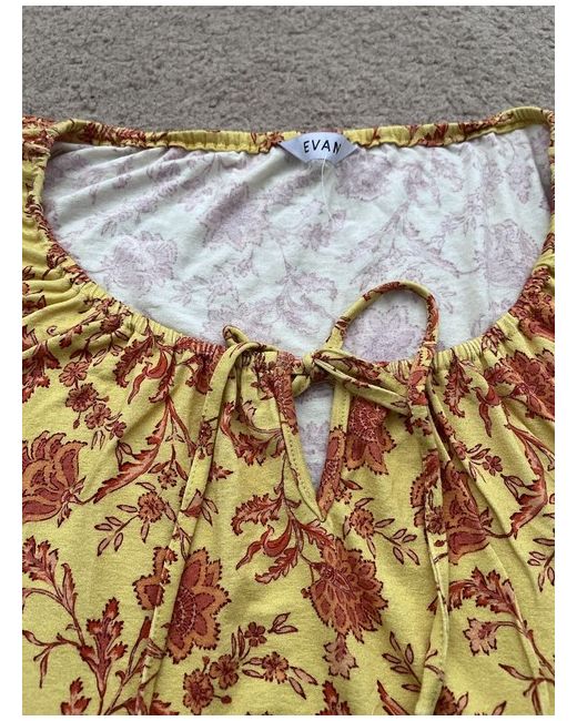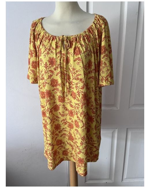 EVANS yellow summer blouse. Floral print. Viscose fabric. Lightweight Short sleeve. Ruched neckline with drawstring tie. UK 14. Full length 29.5”. Pit to pit 21” BNWOT I v RRP £26.00. Brand new!