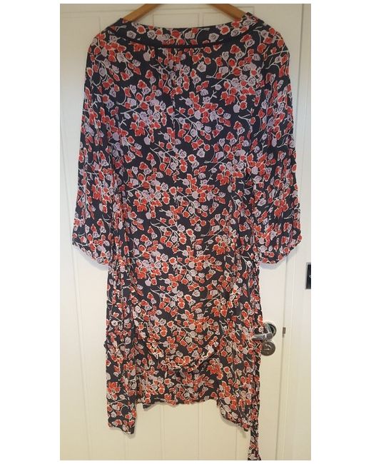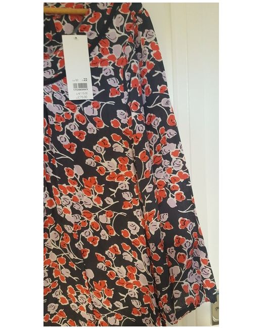 Evans floral shift dress with detachable chiffon belt. Navy blue, red, lilac & white floral pattern. Knee length approx. 100% viscose. Chiffon type fabric.