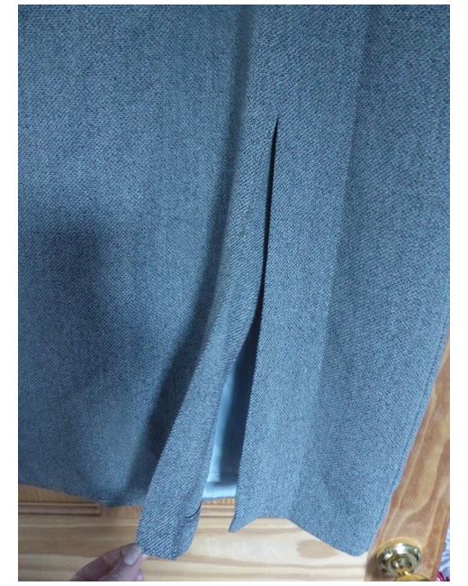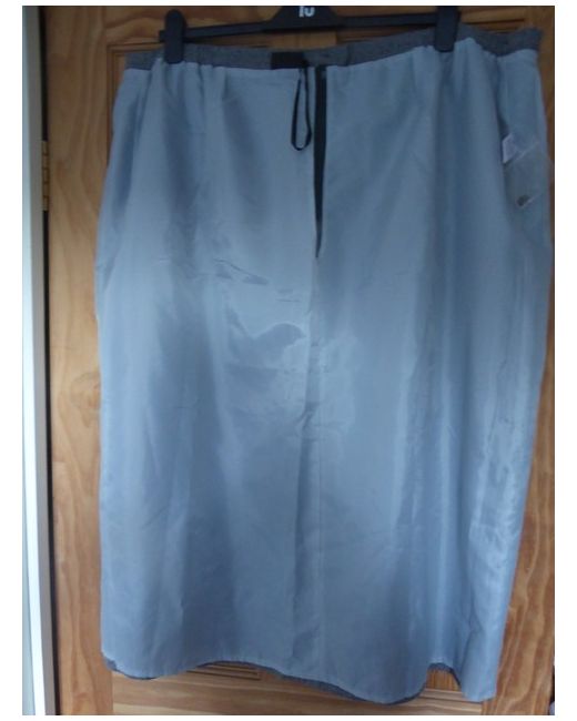 Grey/black in colour with fully lined grey lining. This is a smart, straight skirt with a slit to the front.