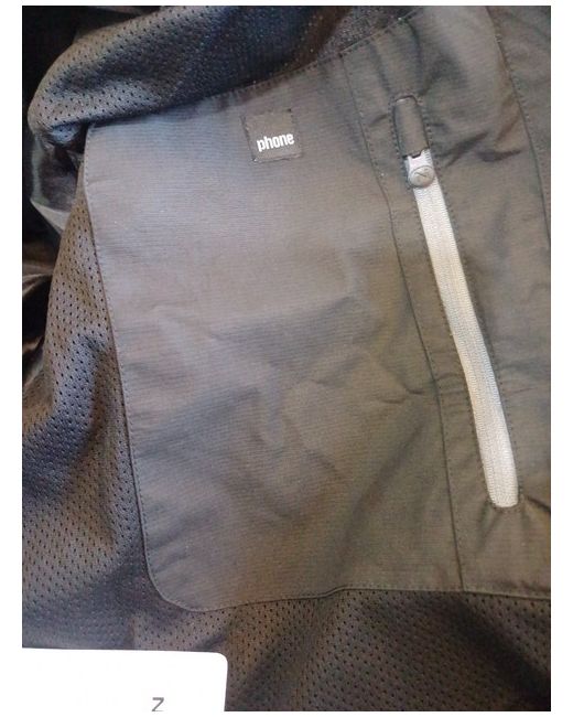It has a waterproof reverse YKK main zipper combined with a horizontal high gloss zipper on the upper left arm, and semi covered zippers at the side pockets. Wind and water repellent PU coating on the backside.