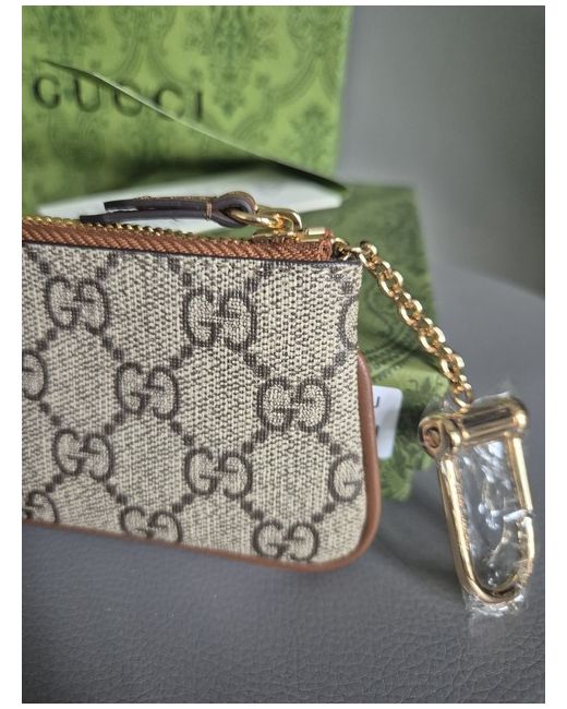 Gucci celebrates house codes with this beige key case, which is crafted from GG Supreme coated canvas for durability. It's made in Italy with a gold top zip that opens to the black twill interior and has a coordinating horsebit-inspired clip that can be attached to your key ring or the inside of your bag. GG Supreme coated canvas Width 4.9in/12.5cm Length 3in/7.5cm Depth 0.4in/1cm New and unused Unwanted gift Grab a bargain Thanks for looking 😊