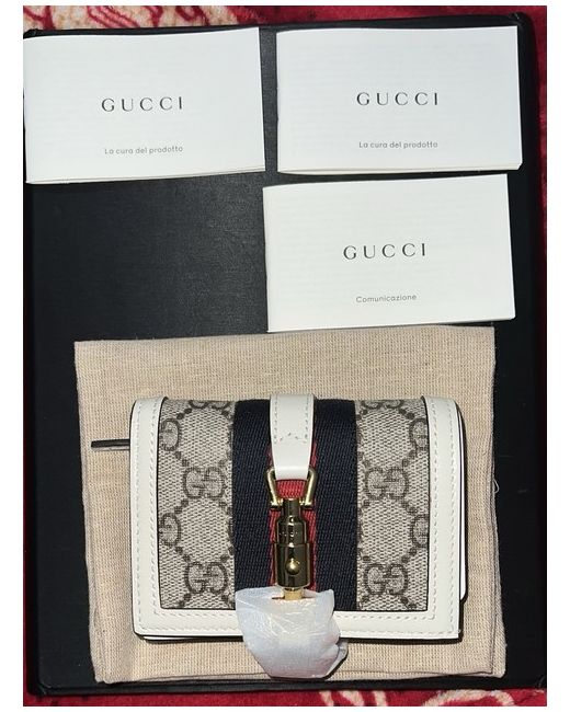 The Gucci Jackie Women’s Wallet is a luxurious accessory crafted from leather in a sophisticated white colour. This stylish wallet features multiple credit card slots and a convenient folding design, making it perfect for keeping your essentials organized in style. With the renowned Gucci brand name, this one-size wallet is ideal for elegant and fashion-forward women who appreciate high-quality craftsmanship and timeless design.