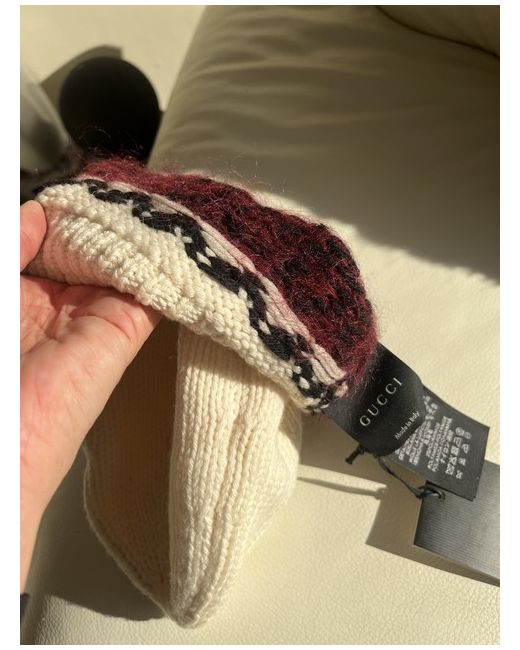 Unisex Authentic Gucci 100% Wool Winter Hat Beanie in ivory black and red.