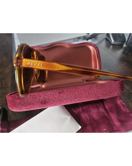 Gucci Women's sunglasses in brown as seen wearing on Molly Mae. Been sat on my side I paid 320.00 for them grab a bargain and please note no returns