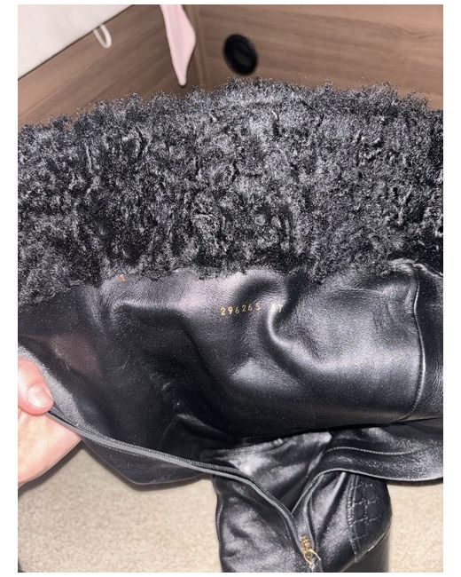 Experience the perfect blend of style and comfort with these Gucci mid-calf platform boots, crafted in Italy for the discerning fashion enthusiast. The sleek black leather upper, complemented by the iconic logo accents and zip details, offers a versatile look that transitions effortlessly from casual daytime wear to evening elegance. Designed with a round toe and a substantial block heel measuring a chic 7.6-10 cm, these boots are tailored to elevate your stature while ensuring stability. The boot features a leather insole, lining, and outsole, ensuring a luxurious feel with every step, making them an essential addition to your winter wardrobe.