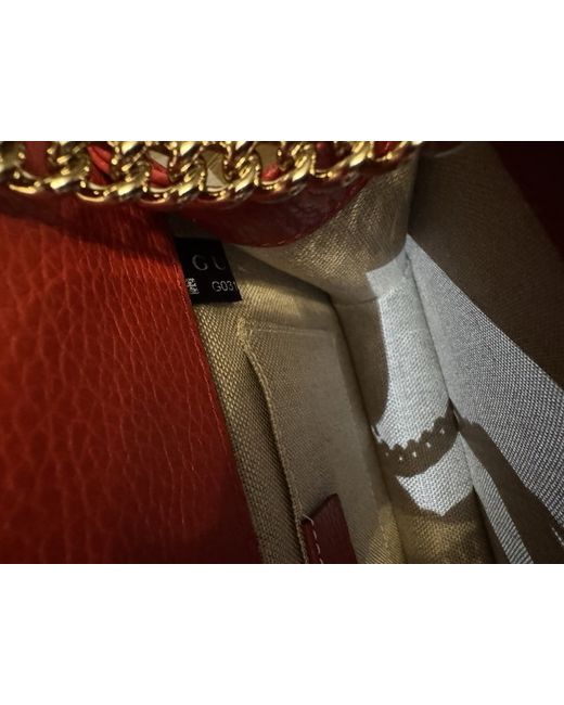 GUCCI Interlocking G Chain Bag Shoulder Bag Leather Red Gold Hardware Gorgeous leather bag Gold chain strap with leather Perfect gift for any occasion Stylish and great quality by GUCCI